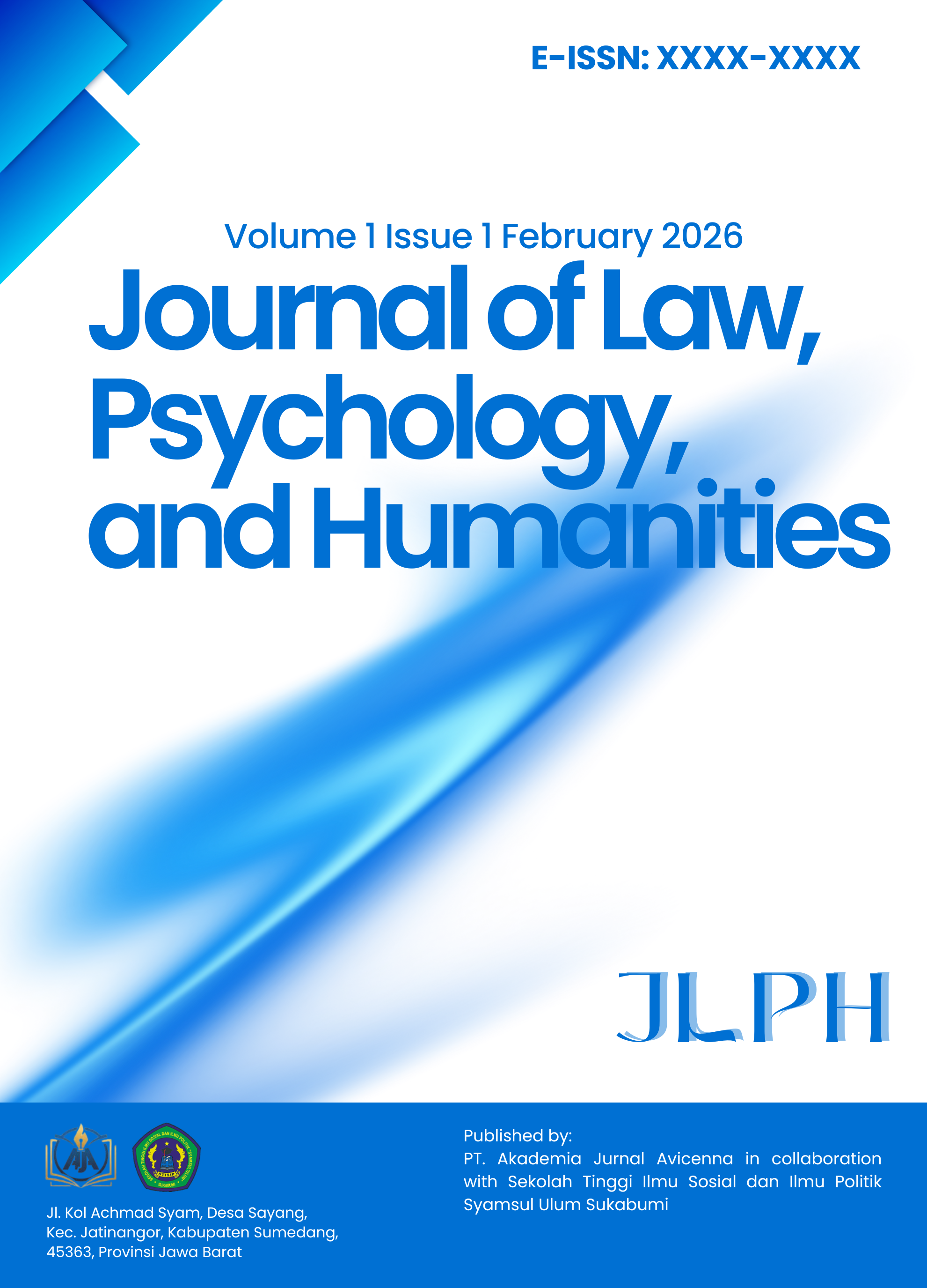 Journal of Law, Psychology, and Humanities (JLPH) (E-ISSN: XXXX-XXXX) is a peer-reviewed academic journal published by PT. Akademi Jurnal Avicenna (registered with the Ministry of Law and Human Rights on June 4, 2025, with the number AHU027639.AH.01.30). The journal is issued twice a year, in February and November, and is dedicated to advancing interdisciplinary research in the fields of law, psychology, and humanities.
